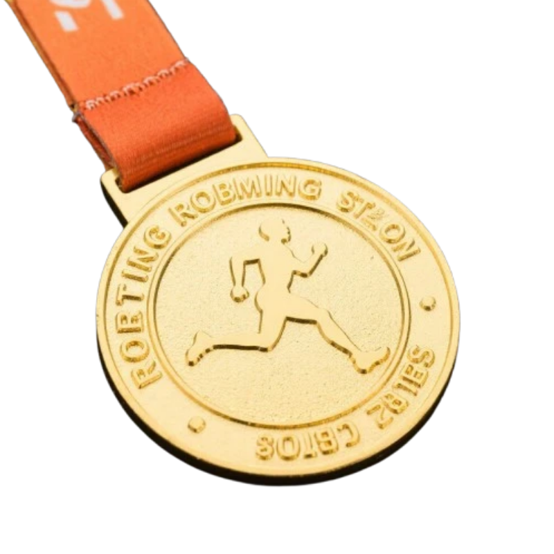 OEM custom zinc alloy sport medals with iron construction, designed for running races and marathon competitions. Features a detailed letterpress design for personalized finisher awards, ideal for sports events and corporate gifting.